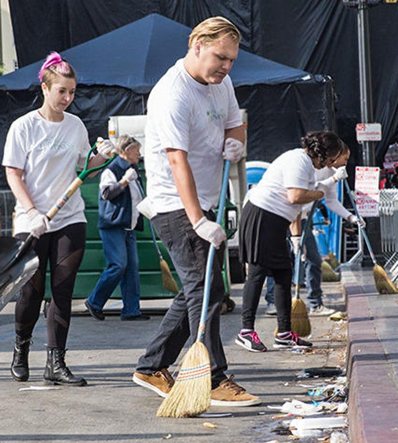 Een vertegenwoordiger van de gemeenteraad van Los Angeles sprak de groep toe voordat hij ze op weg stuurde. Een team van 30 man ging de straat op in De Weg naar een Gelukkig Leven T-shirts en vulden tientallen zakken met vuil en stof langs de route. Tijdens de optocht de volgende avond, zagen miljoenen mensen hoe Hollywood schitterde.