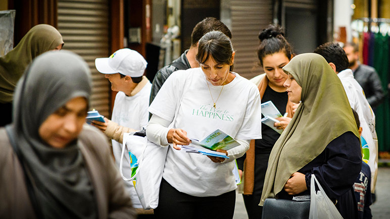Ze begonnen in de wijk Matongé in Brussel, die bekendstaat om zijn mix van Afrikaanse culturen, met de distributie van een gepersonaliseerd boekje met de Belgische vlag. Daarna deden ze ook schoonmaakacties van straten in de stad in overeenstemming met leefregel 12, “Bescherm en verbeter je omgeving”. Decavele zegt: “We hebben verscheidene grote schoonmaakevenementen gehouden omdat de stad vuil is, en er echt behoefte aan is. Terwijl we aan het schoonmaken zijn, delen we ook het De Weg naar een Gelukkig Leven boekje uit.”